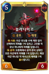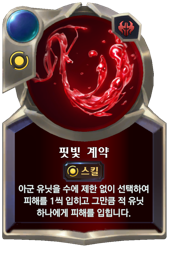 : 아군 유닛을 수에 제한 없이 선택하여 피해를 1씩 입히고 그만큼 적 유닛 하나에게 피해를 입힙니다.