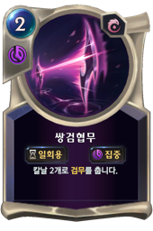 아군 하나를 귀환시킨 후 손에 쌍검협무 1장을 생성합니다.