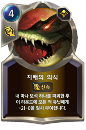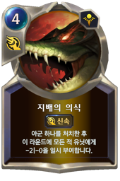 아군 하나를 처치하거나 내 마나 보석 하나를 파괴한 후 이 라운드에 모든 적 유닛에게 -2|-0 을 일시 부여합니다.