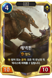 "한때는 레넥톤도 인간이었다. 그의 호전적인 성향과 악어의 형상이 너무도 잘 어울려서 상상하기 어렵지만...'' - 필경사 카니르, 초월체 군단의 역사