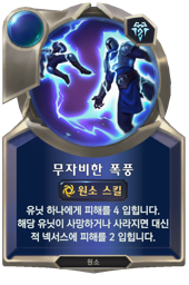 : 서로 다른 무작위 적 유닛을 대상으로 을 3번 사용합니다. 적 유닛이 없으면 적 넥서스를 대상으로 합니다.