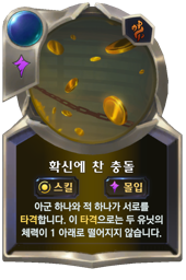 으로는 두 유닛의 체력이 1 아래로 떨어지지 않습니다. II: 아군 하나를 완전히 회복시킵니다. III: 손에