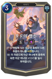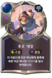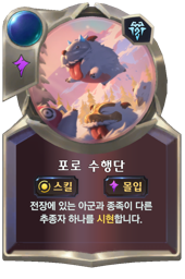 합니다. III: 이 라운드에 아군 하나에게 종족에 속한 아군 하나당 +1|+1을 일시 부여합니다.